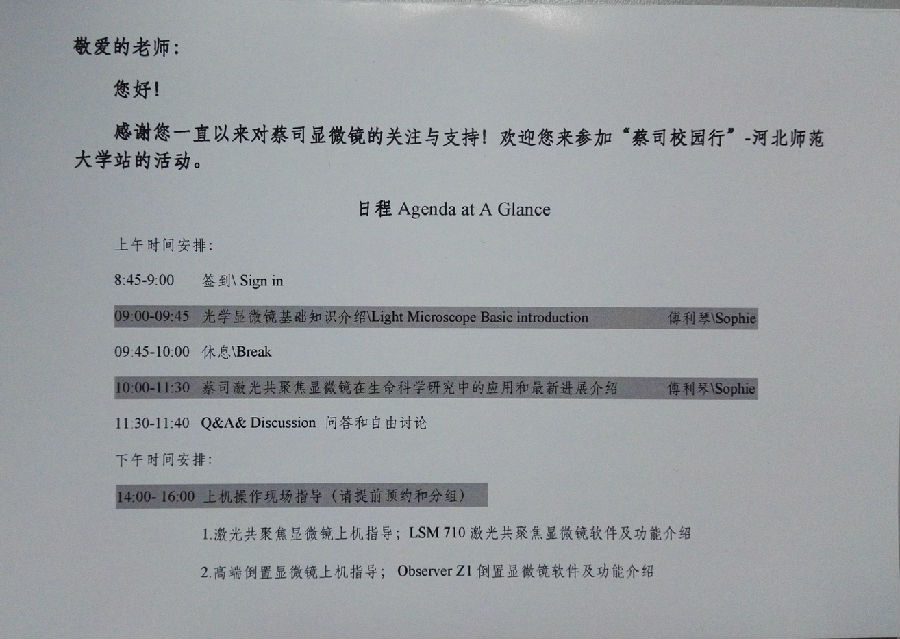 “蔡司校园行”-共聚焦显微镜应用讲座